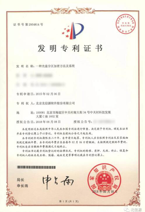 北信源獲得的本項發(fā)明對刻錄到光盤的文件進行分區(qū)域處理,所有用戶可以公開區(qū)域的文件;對于加密區(qū)域的文件,只允許擁有權(quán)限的用戶進行訪問。對于多人使用同一張光盤的情況,通過分區(qū)域處理,極大提高了文件的安全性。