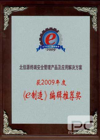北信源榮獲2009年度“《e制造》編輯推薦獎”