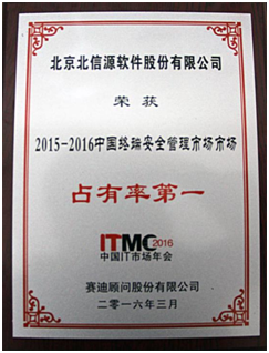 中國IT行業年度盛會“2016中國IT市場年會”于2016年3月18日在北京隆重召開!北京北信源軟件股份有限公司出席本屆大會,并以“2015-2016中國終端安全管理市場市場占有率第一”的優異成績獲評“年度成功企業”稱號,這已是北信源連續第十年獲此行業殊榮!