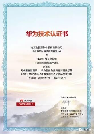 在華為鯤鵬體系推出以來,北信源就啟動了全線產品與華為鯤鵬體系的技術適配工作,此次與華為FusionCube鯤鵬一體機桌面云完成兼容性測試并獲得HUAWEI COMPATIBLE證書及相關認證徽標的三款產品分別是:北信源防病毒系統V3.0、北信源即時通訊信源豆豆V4、北信源主機監控與審計系統V1.2。