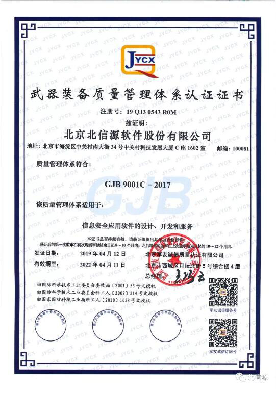 取得國軍標質量管理體系認證(GJB9001C-2017)是民企進軍工的一把金鑰匙,此次認證的通過,意味著北信源軟件在軍品產(chǎn)業(yè)的質量管理能力和水平達到了新版國軍標質量管理體系的要求,表明公司軍工產(chǎn)品承制方面的優(yōu)秀能力,對北信源軟件進一步提升產(chǎn)品質量管理水平、提升生產(chǎn)服務能力、開拓軍品市場、滿足軍方對武器裝備的質量要求具有十分重要的意義,為進一步深入推進軍民融合發(fā)展提供了技術及質量保障。